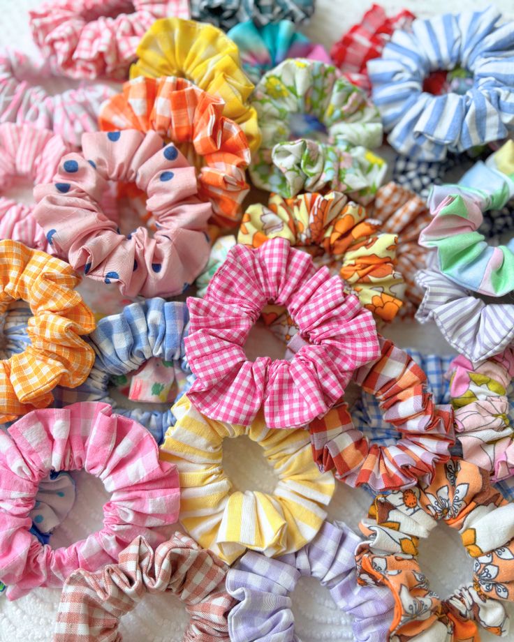 Des chouchous cousus à la main, doux pour les cheveux et faciles à porter. Des accessoires colorés pour apporter une touche originale à toutes tes coiffures.